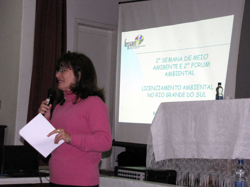 Na primeira, a bióloga explicou sobre o que são os licenciamentos, e sua necessidade para a preservação da diversidade ambiental, existente desde 1981, com as primeiras regulações jurídicas e ampliado a partir da Constituição de 88. "O licenciamento, visa o desenvolvimento que ao mesmo tempo em que atende a necessidade do presente, não afeta a vida ambiental no futuro", salientando ainda a importância dos biólogos nestes processos. Ela mostrou ainda as fases de um licenciamento, divididas em Licenças Prévia (LP), de Instalação (LI) e de Operação (LO), e as finalidades, de acordo com a Resolução 237/97 do Conselho Nacional do Meio Ambiente (CONAMA).