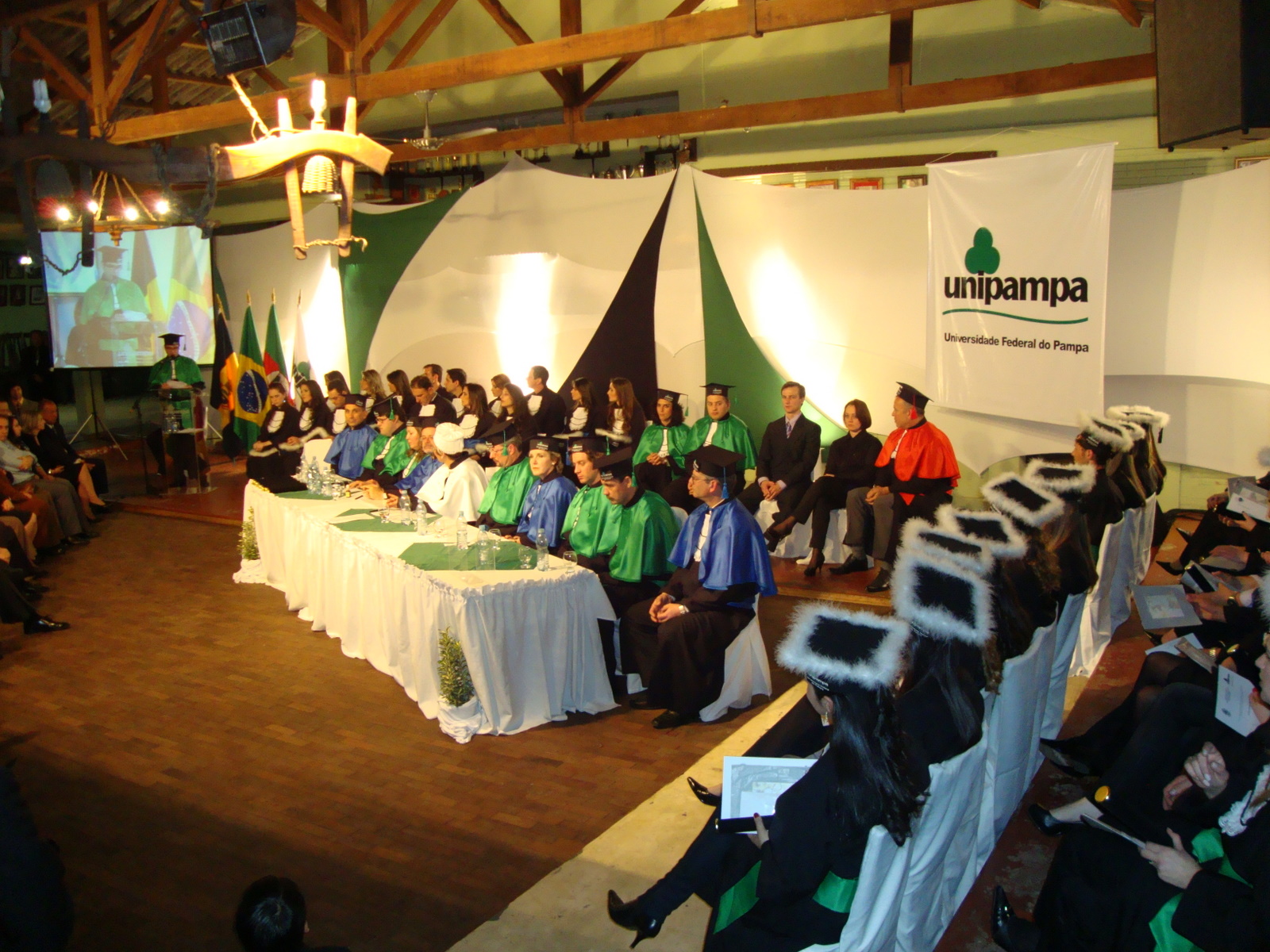 Uma noite marcada pela emoção e pelo máximo comparecimento da comunidade da região. Assim foi a colação de grau dos primeiros formandos do Campus São Gabriel da Universidade Federal do Pampa (Unipampa), realizada na noite de sexta-feira, 17, no CTG Caiboaté. O local foi uma feliz coincidência para a celebração da formatura dos cursos de Gestão Ambiental, bacharelado e licenciatura em Ciências Biológicas realizada em plena Semana Farroupilha na cidade que foi capital da República Rio-grandense, como bem lembrou a reitora Maria Beatriz Luce.